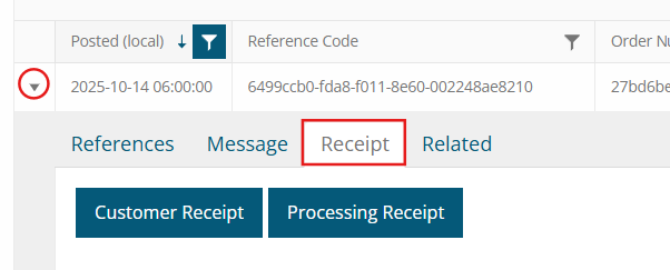 - Click on “Receipt” to open the tab