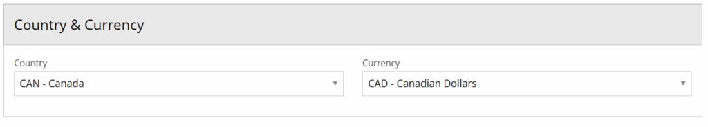 3. Complete the information in the Country and Currency section