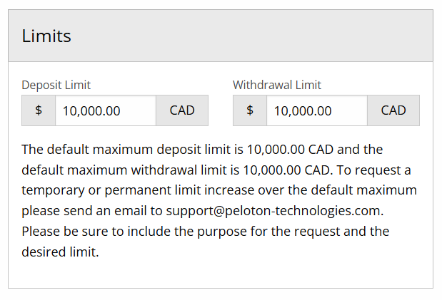 7. For security reasons, default limits are set. If you need a higher limit for a specific bank account, please contact Peloton Support