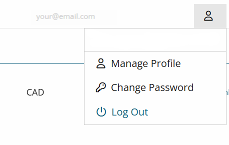 - To change your password, select the profile icon on the right side of the screen and click on “Manage My Profile”
