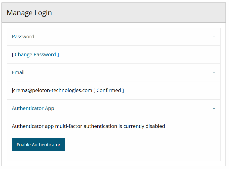 The user profile page will show all the details associated to the user and it will allow you change your password and set two-factor authentications to enhance the security of your account.