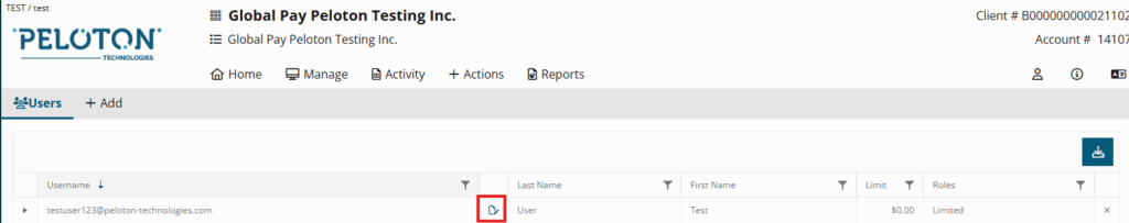 To access the user management tool, click on the client icon and select “Users”. The Users tool allows you to: