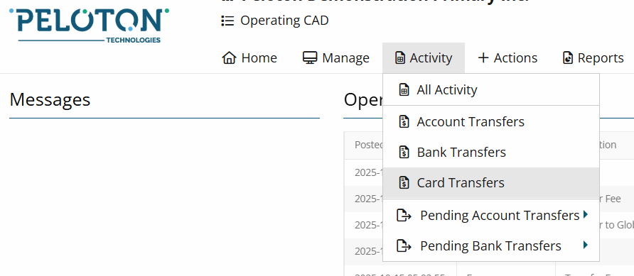 - Click on the drop-down button on the left-hand side of the screen to open the transaction options