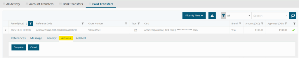 - To cancel the pre-authorization, click on “Cancel” in the Action tab