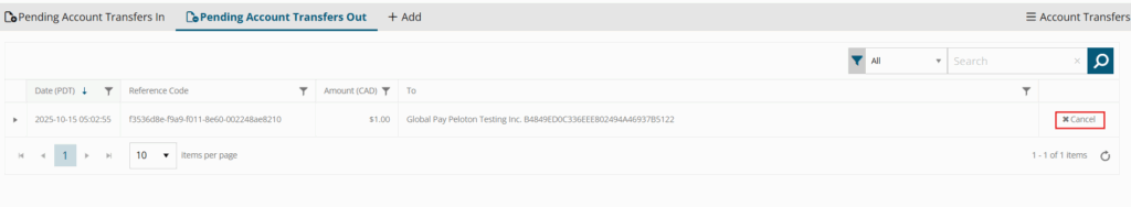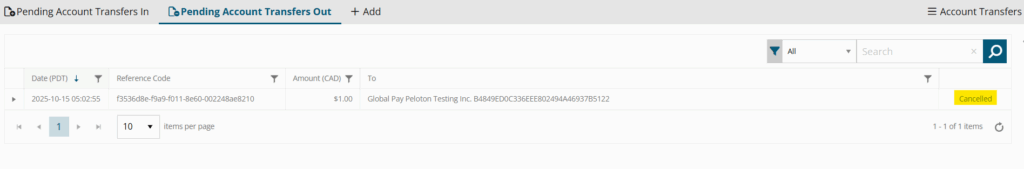 - Select Activity, Pending Account Transfers and click on Pending Out